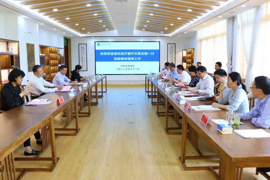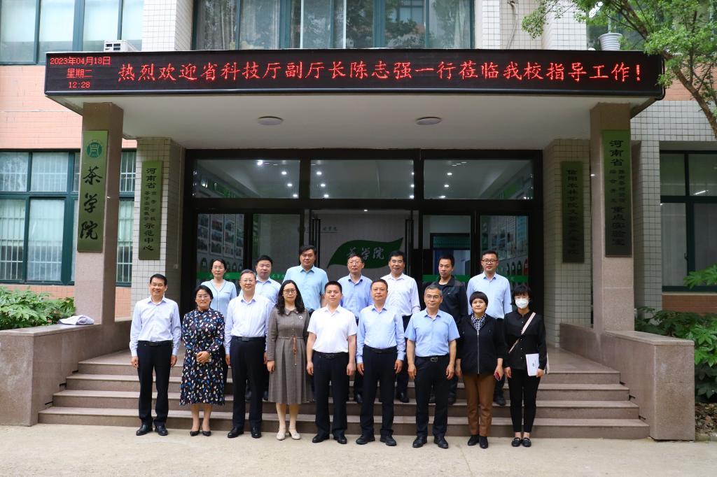 4月18日上午,省科技厅党组成员、副厅长陈志强一行莅临茶学院调研指导河南省豫南茶树资源综合开发重点实验室(以下简称重点实验室)建设与运行工作。市委常委、副市长李俊,校党委副书记、工会主席王庆兵,副校长赵聘,其他相关部门负责同志参加调研活动。