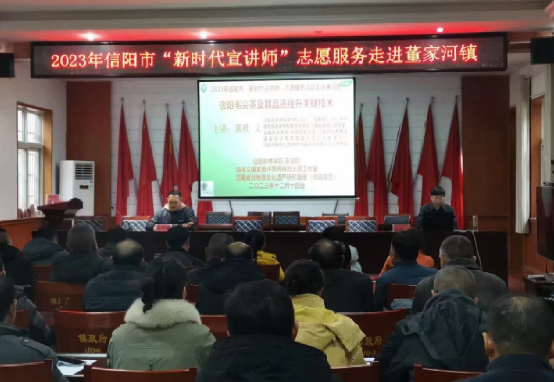 为深入学习贯彻党的二十大精神,推动文明实践志愿服务更好地惠及基层群众。2023年12月14日上午,信阳市“新时代宣讲师”、河南省首席科普专家、beat365在线平台官网茶学院院长、二级教授郭桂义应邀来到浉河区董家河镇开展志愿服务。