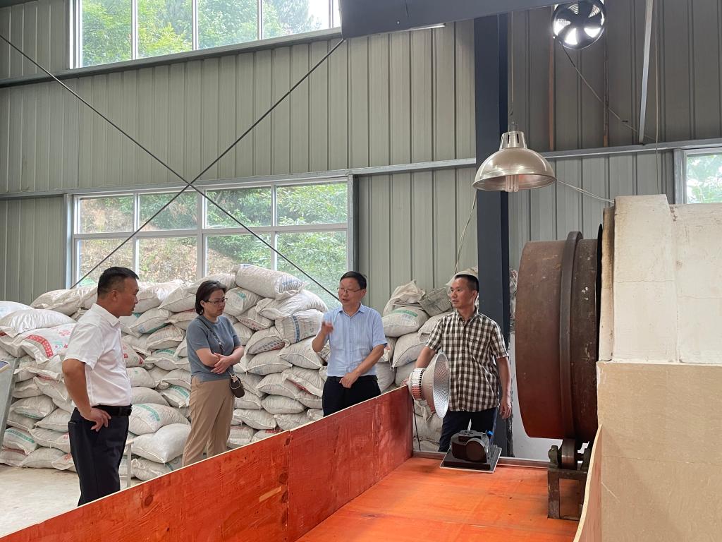在莲雾山茶叶有限公司负责人李业权的陪同下实地考察了公司的信阳毛尖加工设备与黄大茶加工设备,对正在生产的夏茶进行了技术指导。而后,项目组就公司生产的信阳毛尖、黄大茶、白茶、信阳红等样品进行了品鉴,郭桂义教授对茶叶的品质做出了科学评价和建议,并赞许莲雾山公司结合当地夏秋茶叶资源因地适宜地制作黄茶、白茶的创新方式。