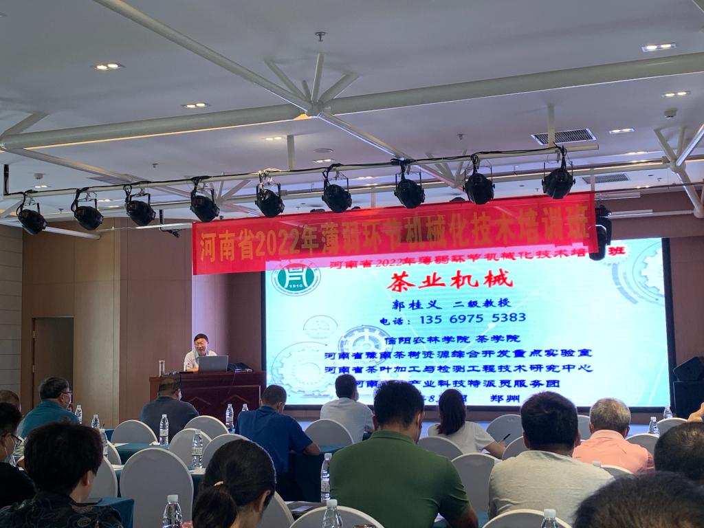 8月4日,河南省农业技术推广总站举办的河南省2022年薄弱环节机械化技术培训班在郑州市举行,beat365在线平台官网茶学院院长、河南省茶产业科技特派员服务团团长、二级教授郭桂义应邀授课。