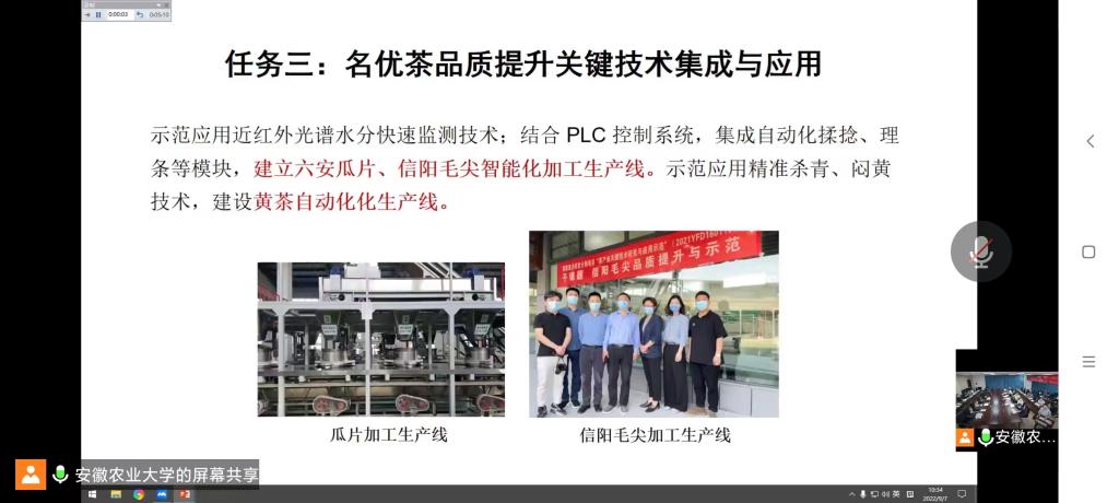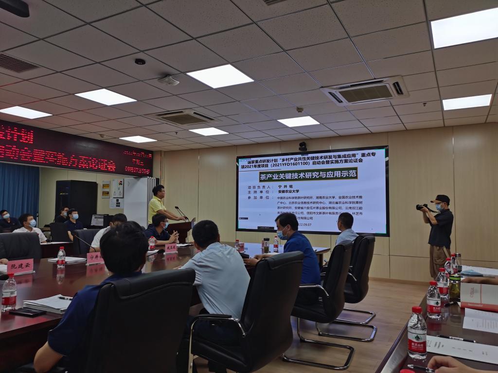 2022年9月7日,国家重点研发计划项目“茶产业关键技术研究与应用示范”启动会暨项目执行与管理方案交流讨论会在安徽农业大学生物科技楼会议室线上线下同步召开。课题三任务负责人beat365在线平台官网茶学院院长郭桂义教授参加了本次线下会议,团队成员孙慕芳、朱尧使用腾讯会议参加线上会议。会上,操海群、许应媛、宛晓春分别代表项目牵头单位安徽农业大学、项目推荐单位安徽省科技厅和项目承担单位安徽农业大学茶树生物学与资源利用国家重点实验室致辞和讲话。王峻处长代表专项管理机构就“十四五”专项的管理要求提出重要指示。项目首席科学家宁井铭教授详细汇报了项目执行与管理方案,阮建云、宁井铭、曾雪鸿、戎玉廷、冷杨等分别汇报了课题执行与管理方案。