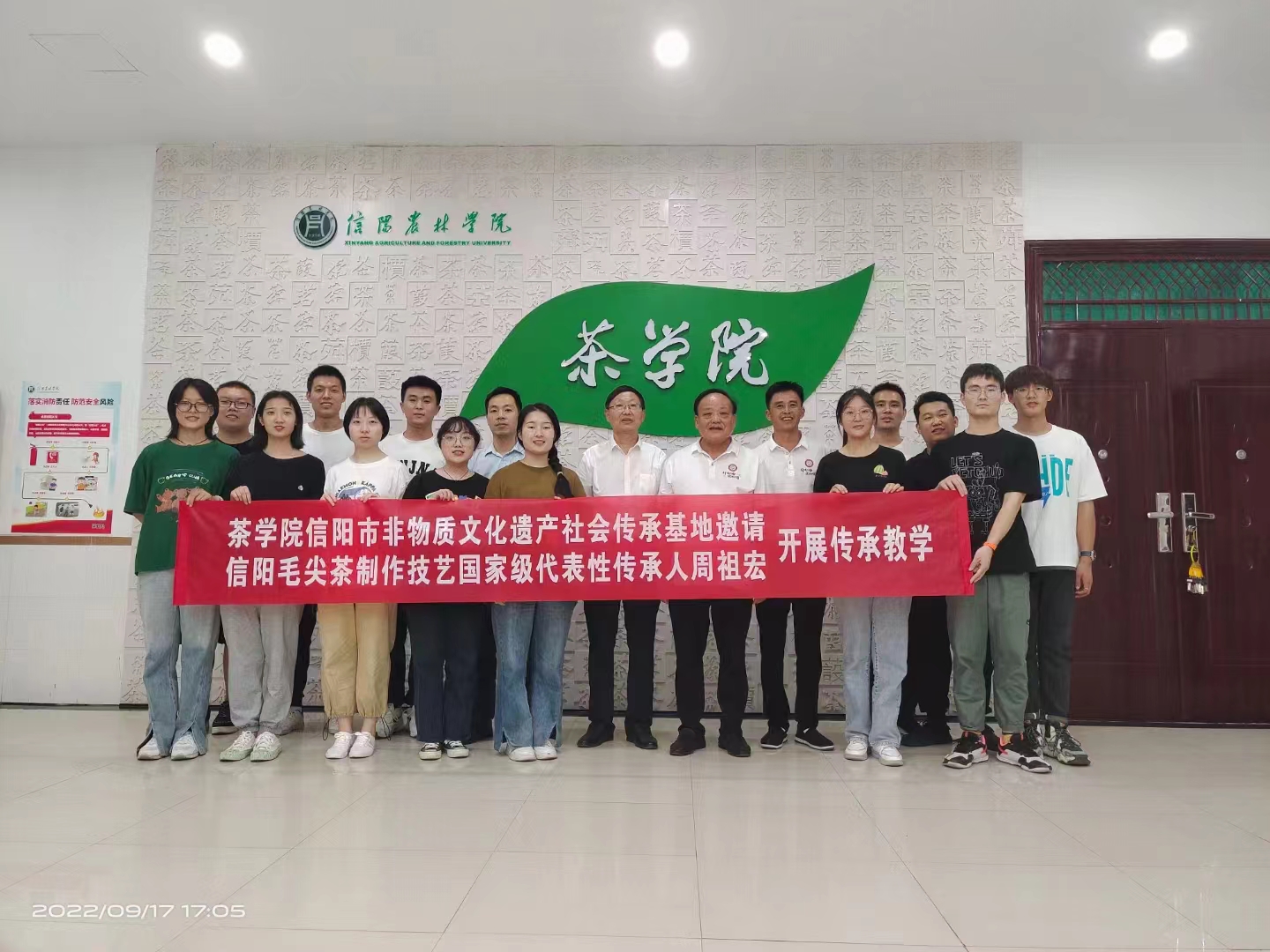 信阳毛尖茶制作技艺是国家级非物质文化遗产代表性项目,学校高度重视对信阳毛尖茶制作技艺的传承与保护。茶学院先后申报并获批河南省非物质文化遗产研究基地、信阳市非物质文化遗产研究中心(信阳毛尖茶制作技艺)、信阳市非物质文化遗产社会传承基地(信阳毛尖茶制作技艺),积极开展形式多样的信阳毛尖茶制作技艺传承活动。