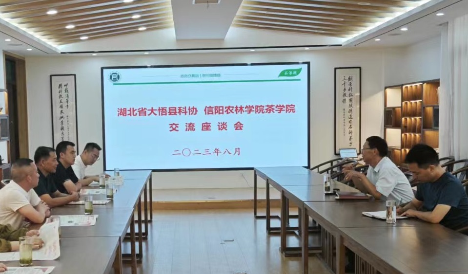 8月18日,湖北省大悟县科协党组成员副主席曹汉家、湖北省大悟县科协副科级干部余家良、开悟湖北绿茶大悟有限公司副总经理陈晓三等来茶学院交流。茶学院院长郭桂义教授、茶学院副院长陈义教授等参加交流座谈会。