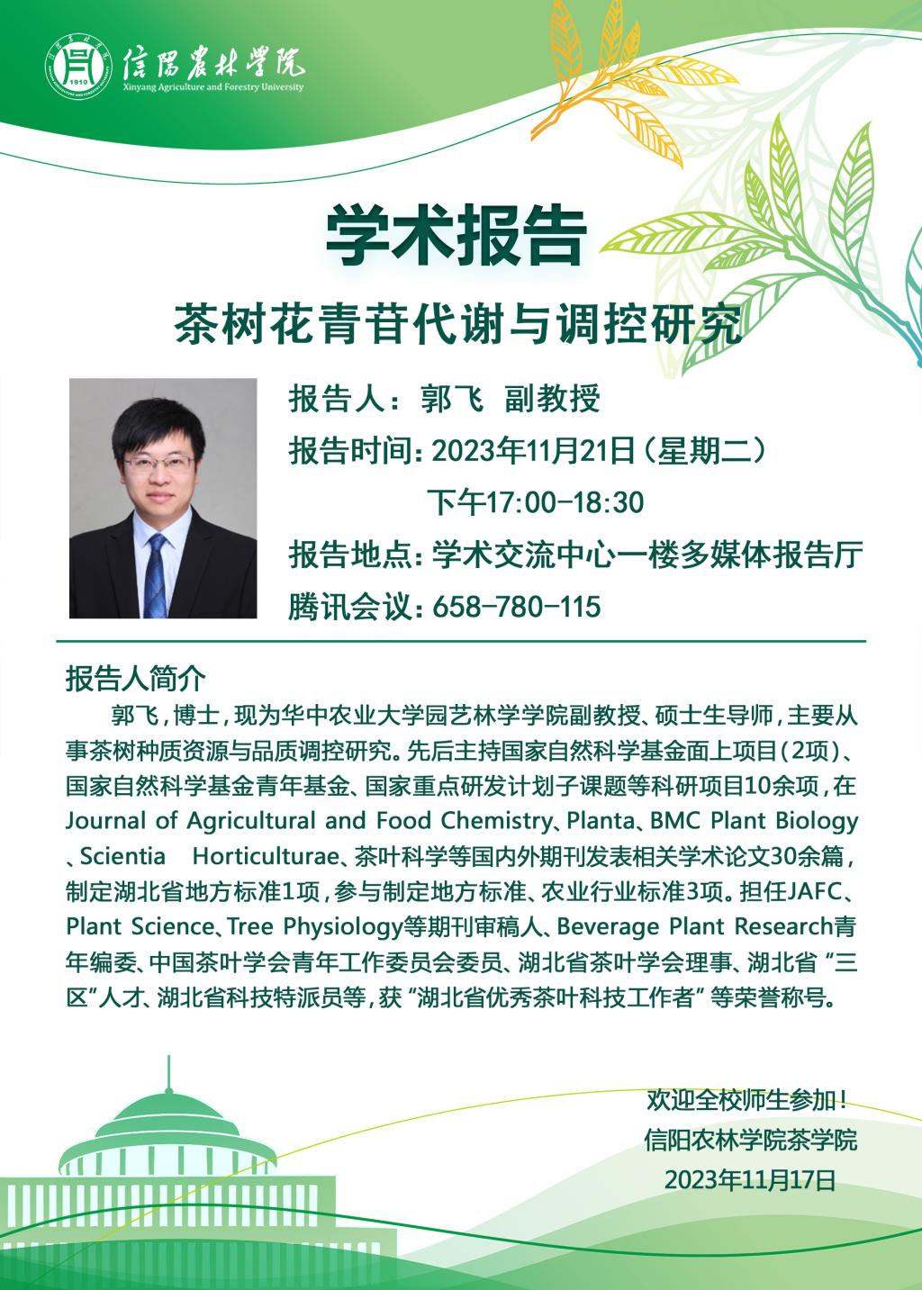 茶学院茶苑大讲堂学术报告预告—茶树花青苷代谢与调控研究