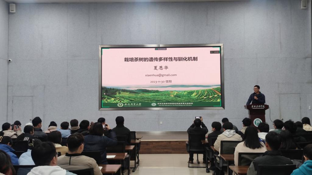 夏恩华教授以“栽培茶树的遗传多样性与驯化机制”为题,从安徽省特色茶树品种“舒茶早”切入研究,系统介绍了茶树基因组的发展历程,通过比较基因组学和群体遗传学的方式,揭示了茶树基因组庞大的主要因素、不同茶树品种间的遗传多样性和茶树基因组杂合区域的基因功能,解析了茶树驯化过程表皮毛发育机制及驯化基因在提高栽培茶树低温耐受性过程中发挥的重要作用,为茶树重要农艺性状基因挖掘和利用奠定坚实基础。