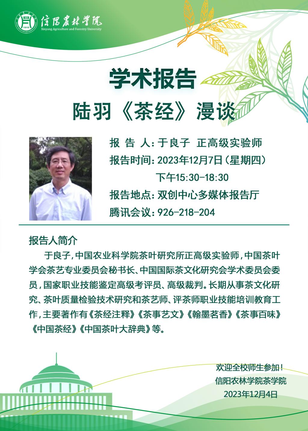 茶学院茶苑大讲堂学术报告预告——陆羽《茶经》漫谈
