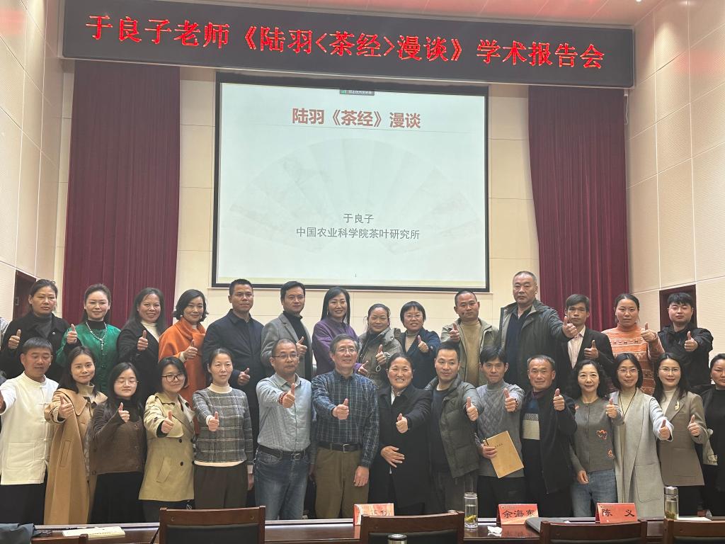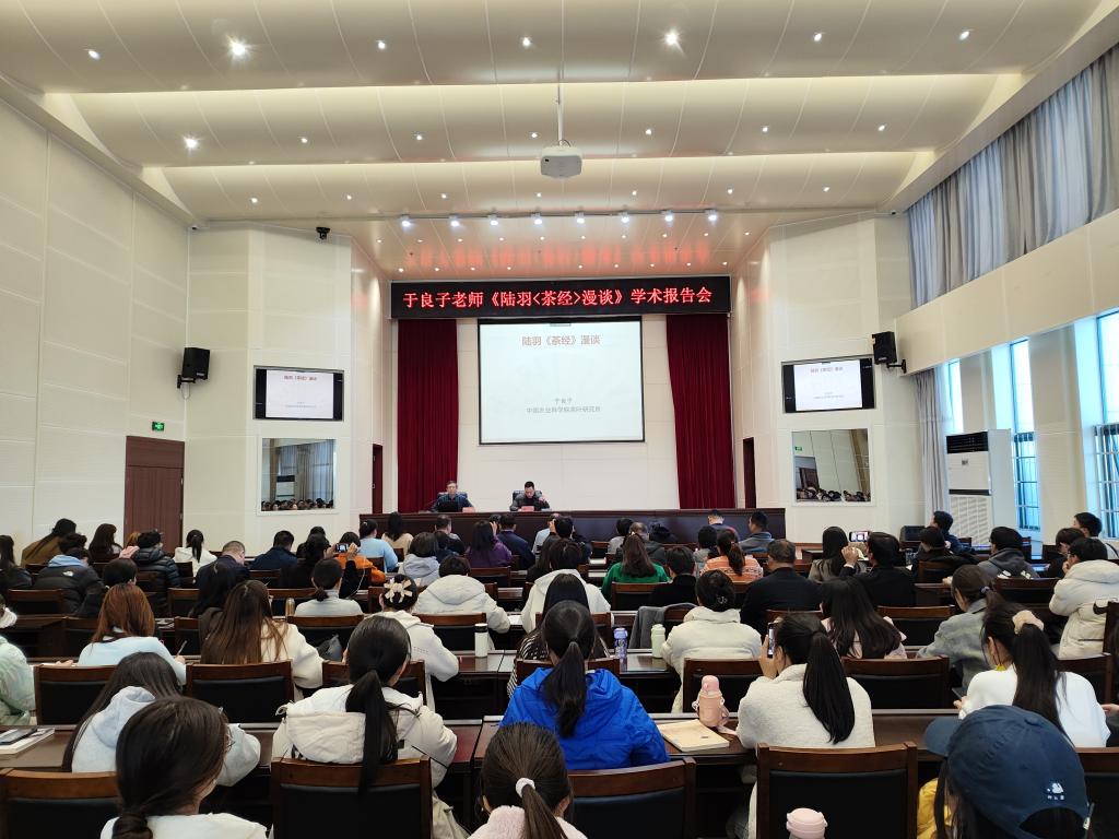 12月7日下午,中国农业科学院茶叶研究所于良子老师在图书馆报告厅为茶学院师生作了题为“陆羽《茶经》漫谈”的学术报告。茶学院副院长陈义教授、信阳师范大学袁正仿老师、信阳市茶文化协会会长余海东及部分专业教师和在校学生、茶企代表、信阳茶文化协会会员、茶叶行业从业者二百余人通过线上线下结合的方式参加了报告会,报告会由茶学院副院长陈义教授主持。