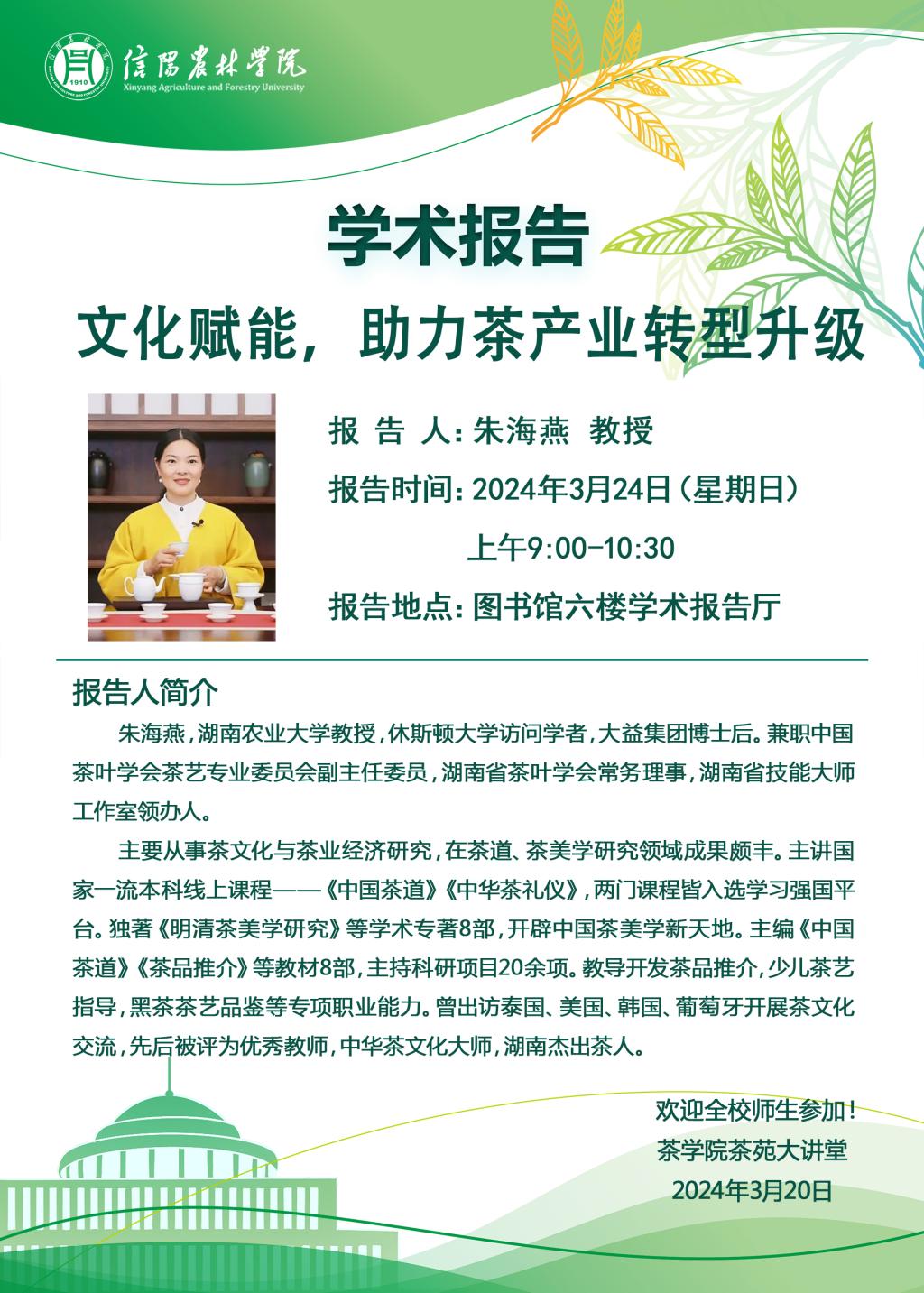 茶学院茶苑大讲堂学术报告预告——文化赋能,助力茶产业转型升级