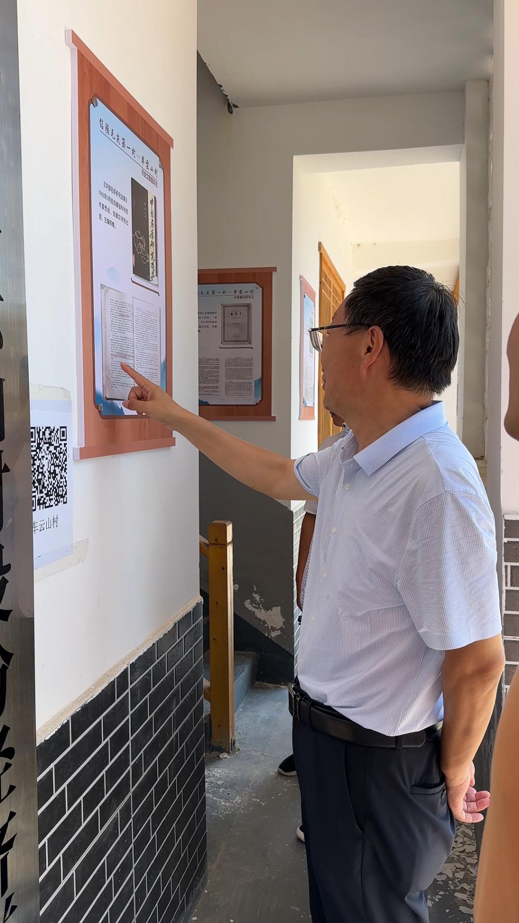 首先,郭桂义查看了在车云山村村委会由河南省茶产业科技特派员服务团提供技术和理论指导建设的“信阳毛尖茶第一村----车云山村”茶文化墙,文化墙主要展示了与车云山村有关的信阳毛尖茶文献对车云山信阳毛尖茶品质的评价,为“信阳毛尖茶第一村”这一品牌打造,提供支撑。郭桂义表示,找寻记载车云种茶、制茶的历史文献,挖掘车云山村茶文化历史,制作车云山茶文化展示展板等,能够有效促进车云山村茶产业的发展。