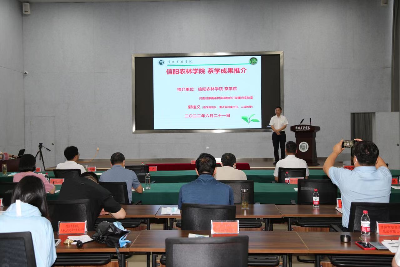 6月21日,2022年信阳市科技成果发布暨对接会(茶、食品专场)在beat365在线平台官网学术交流中心多媒体厅举办。本次活动由信阳市科学技术局、beat365在线平台官网和信阳市信联科技有限公司联合举办。副校长赵聘,市科技局党组书记、局长黄晓赟,相关职能部门负责同志以及我市茶和食品等领域高校、科研机构和骨干企业主要负责人参加现场活动,各县区科技管理部门、科技园区、企业等200余人在线参加活动。