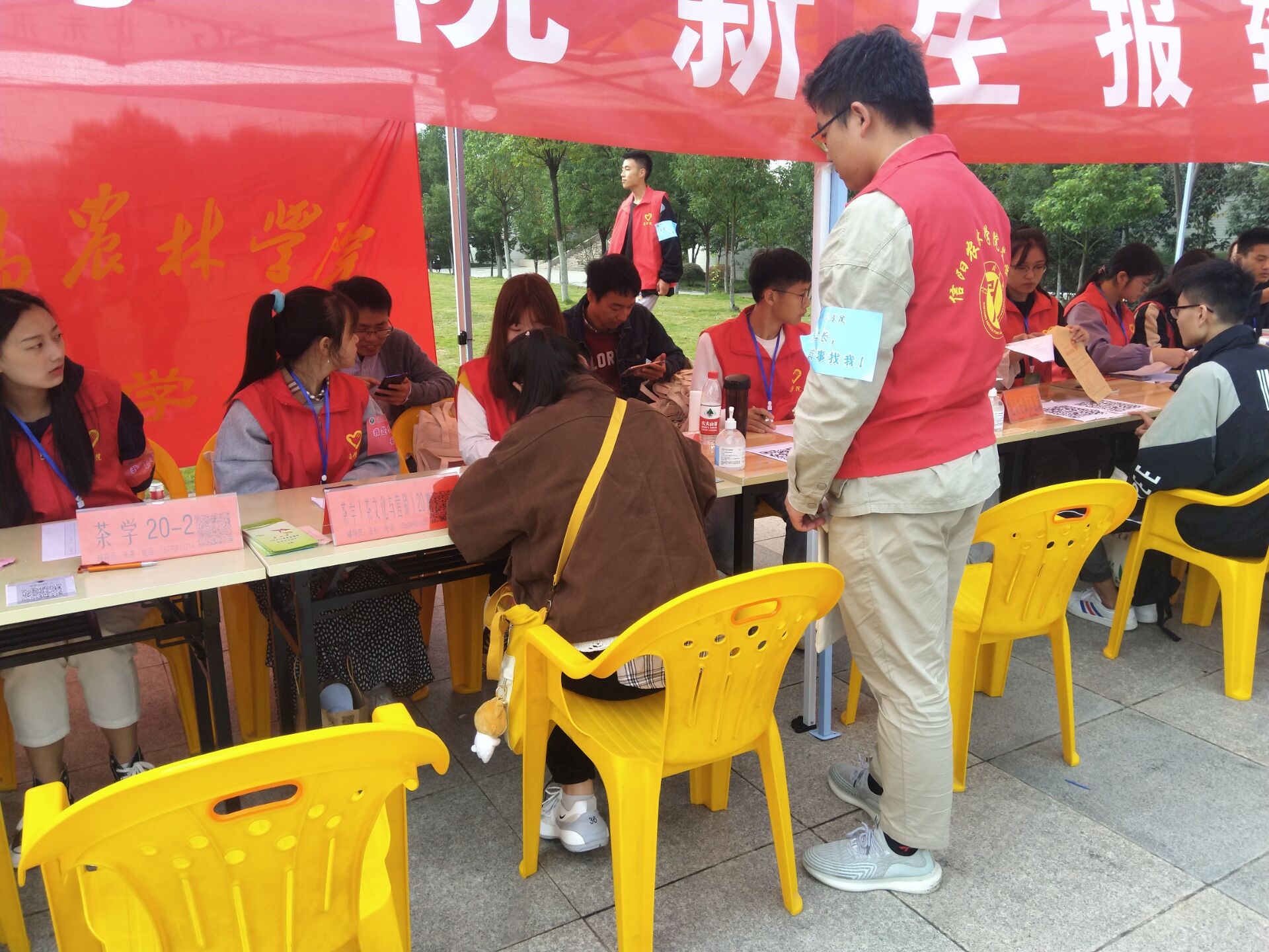 迎新现场,我们一如既往地摆放了茶台,为前来送孩子的家长泡上一杯茶,品味信阳的茶香,也放松放松身心。
