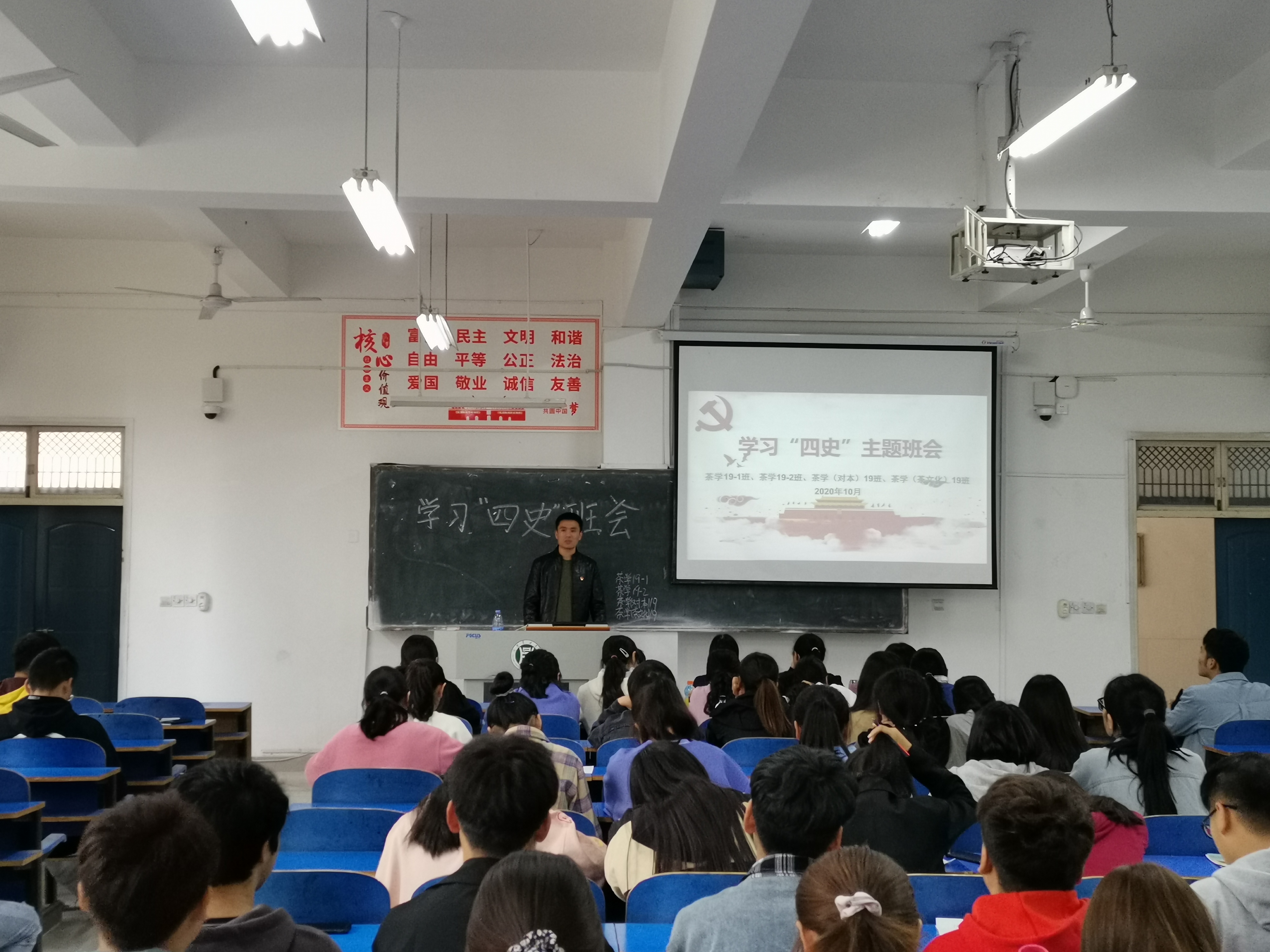 为深入学习贯彻习近平新时代中国特色社会主义思想和习近平总书记关于党史、新中国史的重要论述,进一步深化抗疫认识,坚定理想信念,传承红色基因,激发爱国力行,不断增强听党话、跟党走的自觉,茶学院各班在10月25日召开了学习“四史”主题班会。