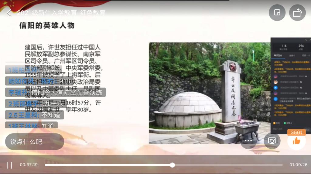 为了让2021级新生更好的了解信阳红色文化和大别山精神,茶学院于9月18日上午通过钉钉在线直播开展了新生入学教育之红色文化教育。