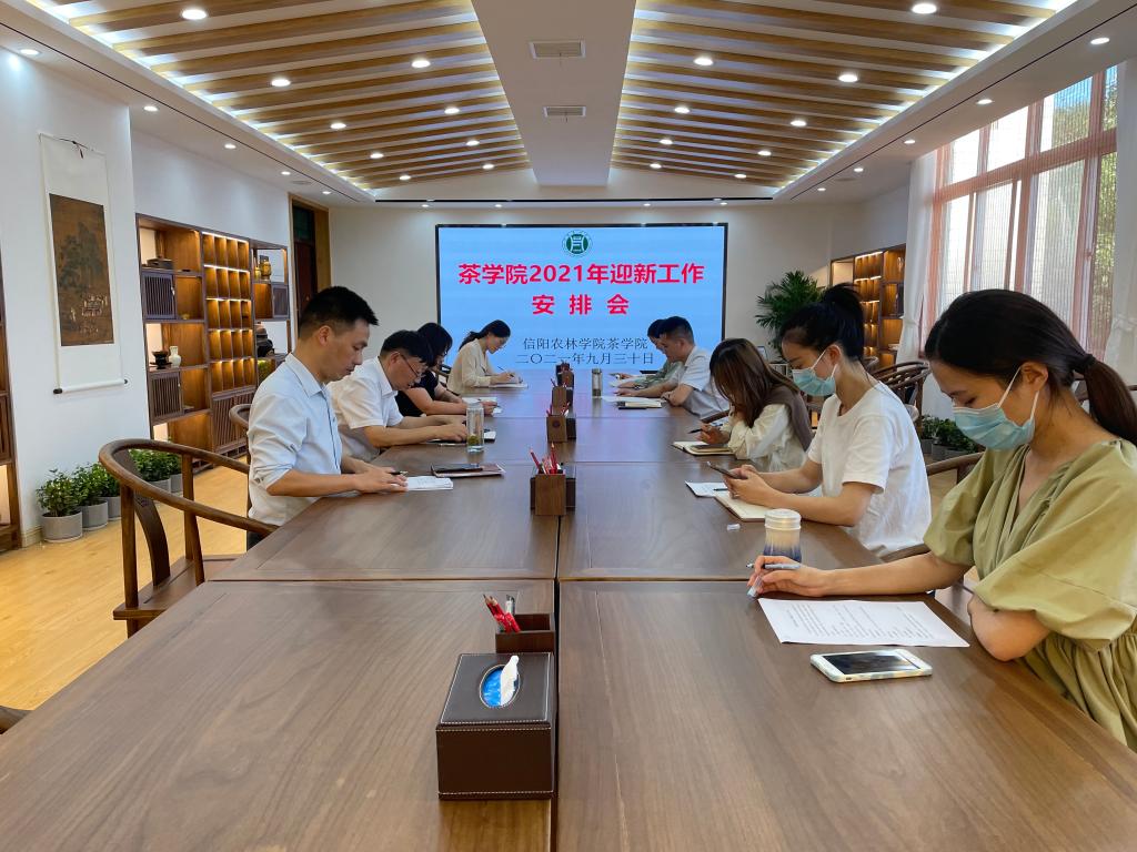 为安全、顺利、高效地完成我院2021年迎新工作,根据学校迎新工作要求和统一部署,9月30日,茶学院召开了迎新工作安排部署会,会议由党总支副书记朱建梅主持,茶学院院长郭桂义,茶学院副院长孙慕芳、副院长陈义、团总支书记王子浩和部分新老生辅导员参加了会议。