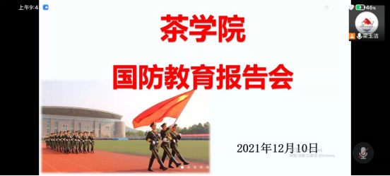 为全面贯彻落实习近平强军思想,吸引更多高素质在校大学生参军入伍,进一步增强同学们的国防意识,激发参军报国的热情,切实将爱国情,强国志转化为报国行。12月10日,茶学院召开了线上国防教育征兵动员会,院武装专干梁玉洁主讲,院毕业班和2021级学生参加。
