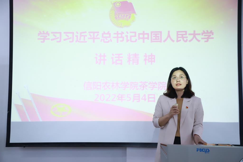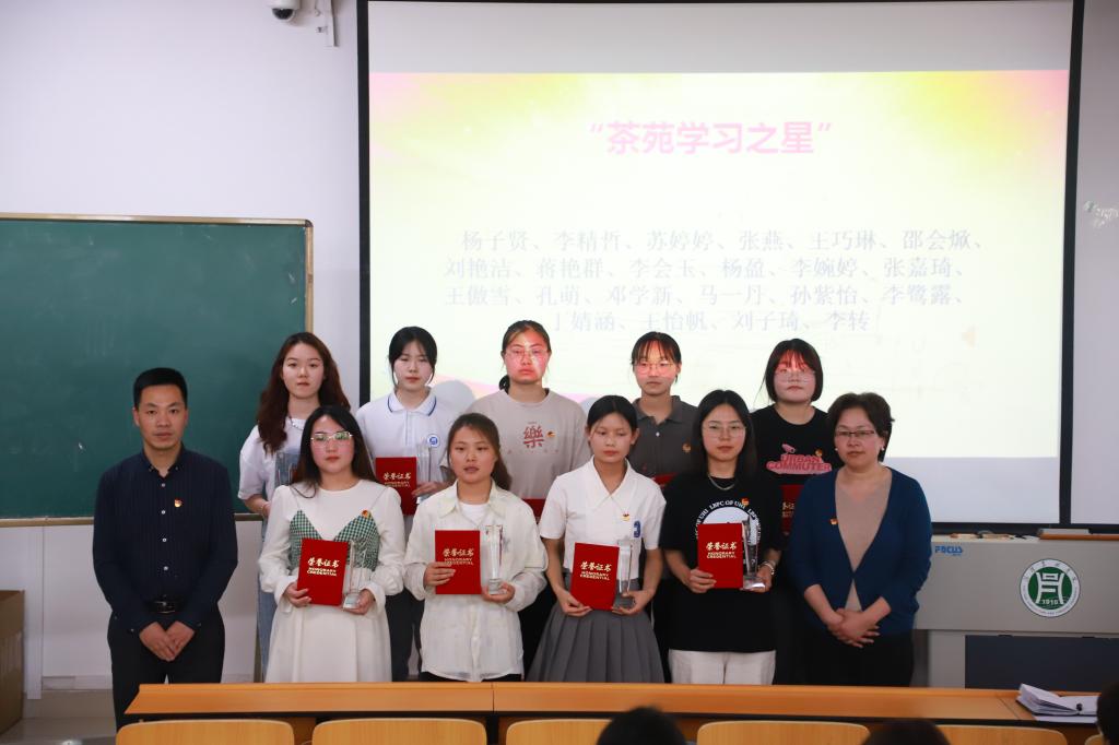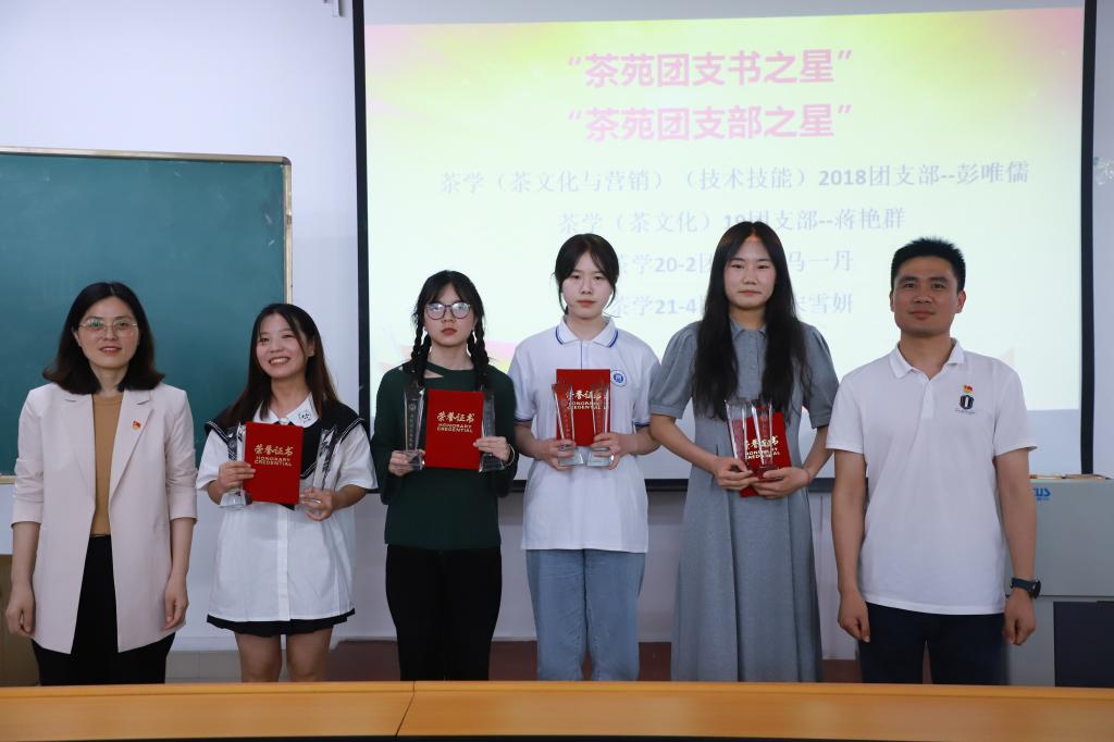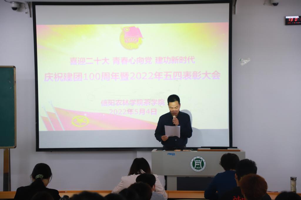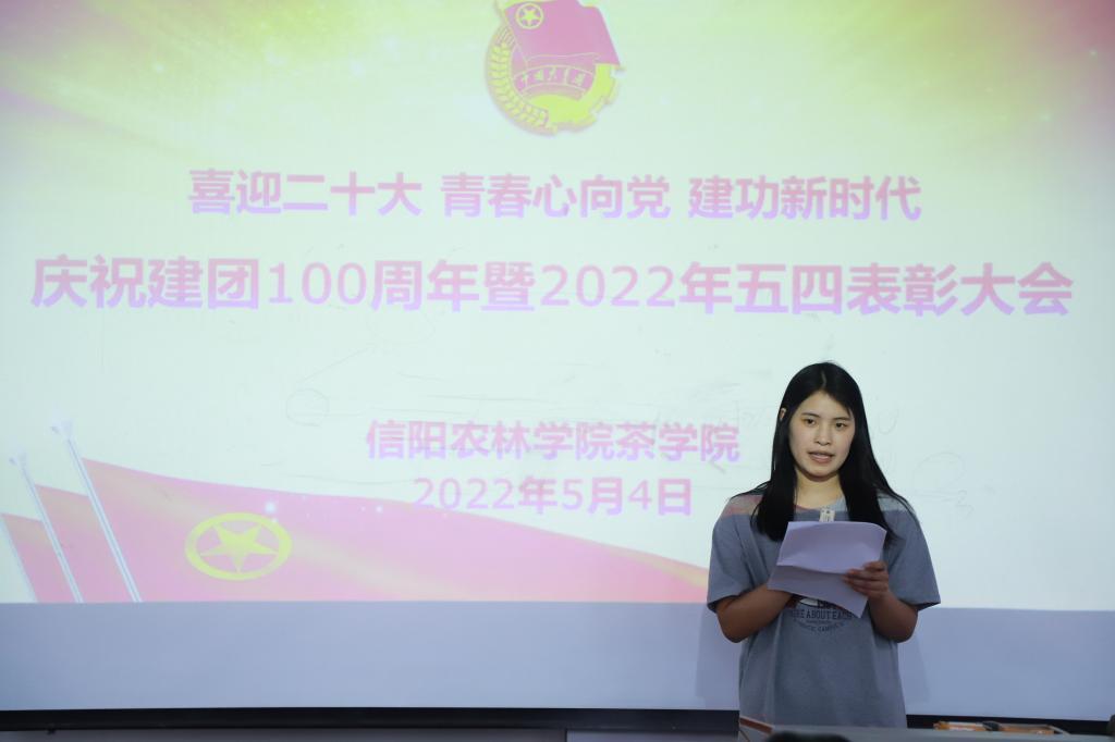 为迎接党的二十大胜利召开,庆祝建团100周年,进一步继承和发扬“五四”精神,激励和动员广大团员青年勇担时代使命,在全院团员青年中弘扬积极向上的良好风尚,树立典型,表彰先进,增强团组织的凝聚力和号召力,5月4日中午,茶学院在二教306举办“喜迎二十大 青春心向党 建功新时代 庆祝建团100周年暨2022年五四表彰大会”,副院长孙慕芳,副院长陈义,党总支副书记朱建梅,团总支书记王子浩,党总支组织员丁岚及学院全体辅导员出席大会。