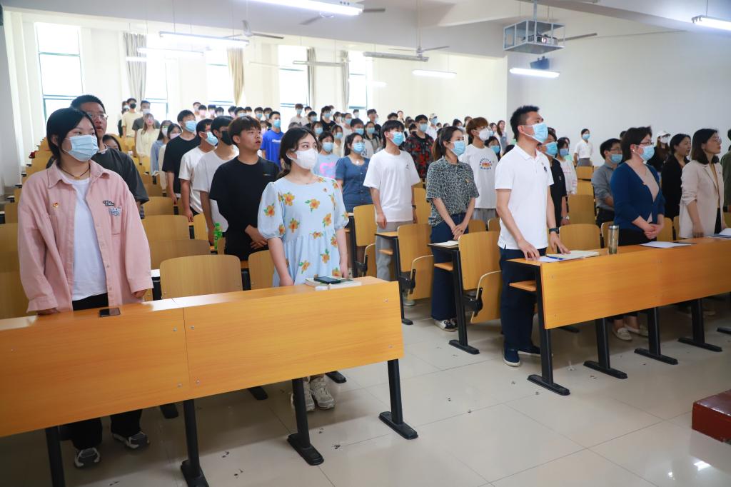 最后,朱建梅带领所有在场师生学习传达了习近平总书记在中国人民大学考察时的重要讲话精神,要求全院青年争做堪当民族复兴重任的时代新人,团总支、团支部要扎实做好联系和服务学院青年工作,要注重加强学院青年学子的学业历练、实践锻炼,不断提升新时代青年的社会责任感和时代使命感,希望全院青年要做社会主义核心价值观的坚定信仰者、积极传播者、模范践行者,向英雄学习、向前辈学习、向榜样学习,争做堪当民族复兴重任的时代新人,在实现中华民族伟大复兴的时代洪流中踔厉奋发、勇毅前进。