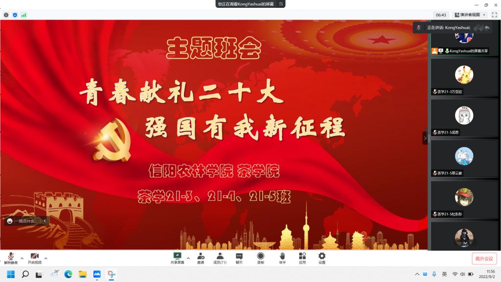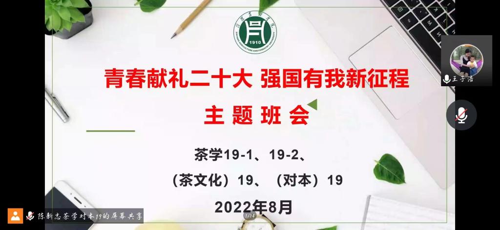 为进一步激发全院师生爱党、爱国、爱社会主义的热情,营造迎接、学习、宣传党的二十大的浓厚氛围,根据《beat365在线平台官网迎接学习宣传党的二十大主题宣传教育活动方案》和学校相关要求,近日,茶学院各班召开“青春献礼二十大,强国有我新征程”主题班会。
