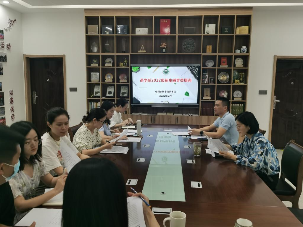 为进一步提升新生辅导员业务能力,推进茶学院辅导员队伍专业建设,促进新入职辅导员尽快找准定位、转换角色,适应岗位,9月9日上午,茶学院在1C102开展了2022级新生辅导员培训会,茶学院党总支副书记朱建梅、团总支书记王子浩、教学秘书张永瑞及全体新生班级辅导员老师参加会议。
