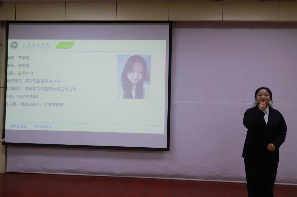 5月12日中午1点,茶学院在二教204举行了学院第十三届团总支、学生会,第三届自律委员会换届大会。茶学院团总支书记王子浩、全体辅导员、主要学生会干部及21-22级部分学生参加大会。