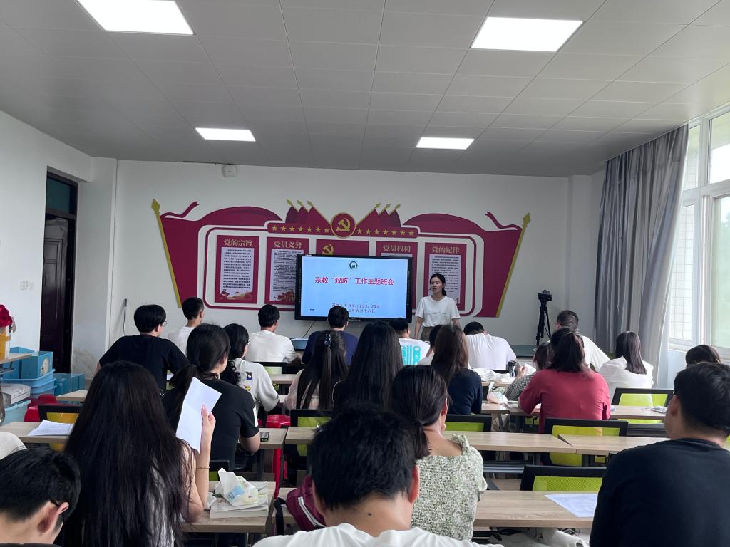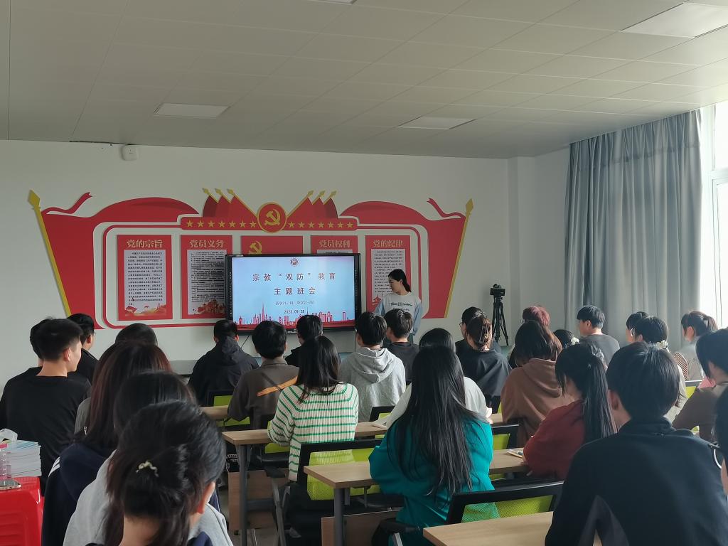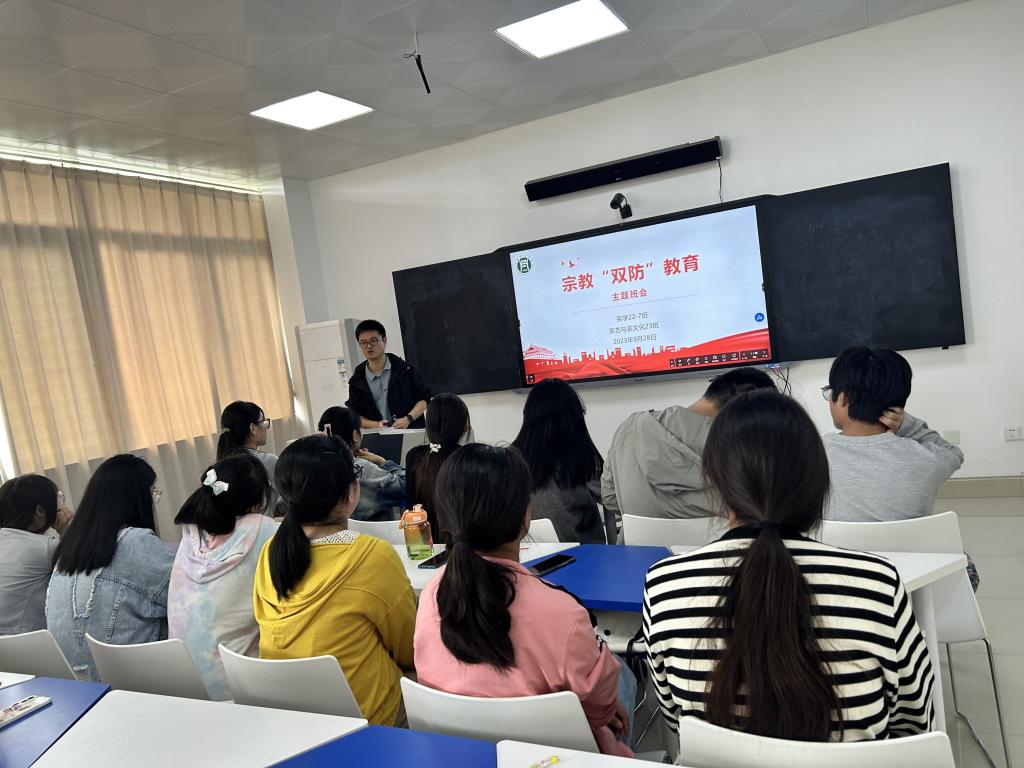 各位辅导员老师向同学们宣讲了我国现行法律法规中关于宗教的相关内容以及“双防”的具体含义:防止境外势力侵入、防止宗教势力渗透,要求大家高度重视,严格按照法律法规和校规校纪中关于宗教的要求规范自己的行为,并着重强调要提高自身的辨别能力,防止受到不法言论的蛊惑。