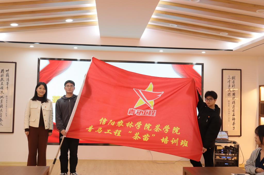 仪式在雄壮的国歌声中拉开帷幕。校团委副书记魏竞超为培训班授旗。培训班辅导员、院党总支副书记王子浩传达了学院青马工程“青苗”培训班纪律要求。指导教师梁玉洁宣读了培训班临时团支部、班委会组成人员及学员名单。
