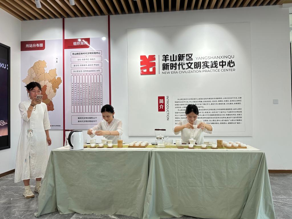 品一盏香茗,叙千年风雅。7月7日,茶学院“茶多星”中华文化传承团在羊山新区新时代文明实践中心开展“不卷课堂”主题活动。团队成员、茶学院青年教师卫艺炜老师主讲了“来试点茶三昧手”茶文化主题微课,为参与活动的周边青少年及家长进行了宋代点茶知识的普及。团队学生成员表演了盖碗茶艺,并指导小朋友们亲身体验点茶、茶艺的魅力。