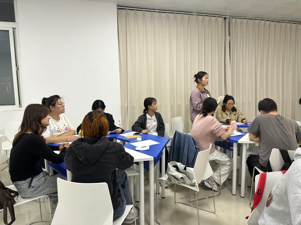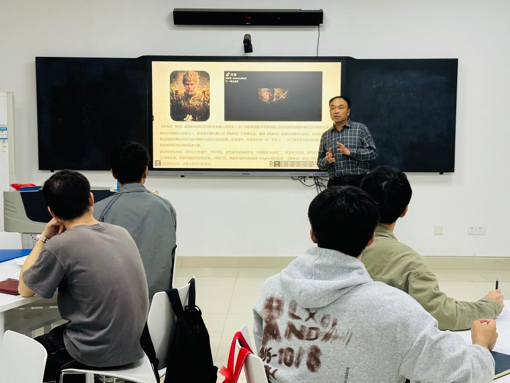 王鹏老师从今年暑期热门的《黑神话:悟空》讲起,作为一款植根于中国古典神话的游戏巨作,它的成功展现了中国文化自信,但即便如此,这款游戏还是被多位家长投诉。由此现象,王老师引导学员们辩证看待这一社会现象,并以问题为导向,指导同学们分组讨论、回答相应的问题。青马班学员们积极互动、认真思考,有理有据地回答问题,展现了学员们活跃的思维和对社会热点的辩证思考。