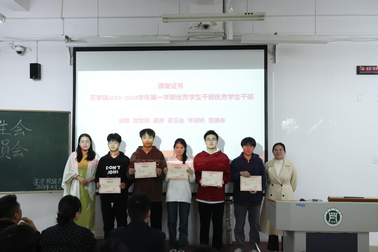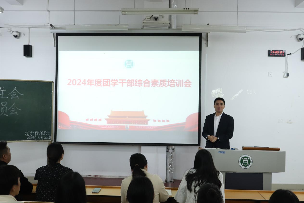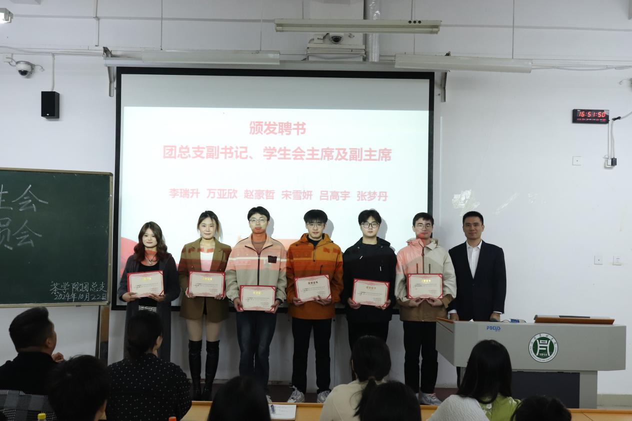 茶学院党总支副书记王子浩老师、团总支副书记梁玉洁老师、武装专干孔亚帅老师、新媒体指导老师卫艺炜老师以及专职辅导员、资助专员李梦婷老师出席此次活动,23级、24级班长团支书及各部门成员参加,会议由孙赢同学主持。