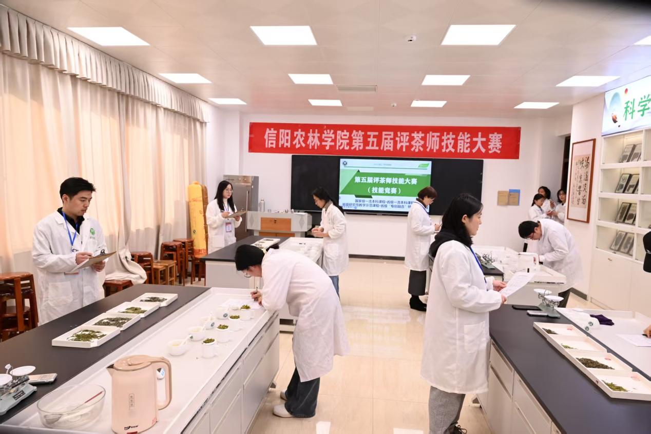 为深入贯彻落实习近平总书记关于技能人才工作重要指示批示精神,高质量推动“人人持证、技能河南”“人人持证、技能信阳”建设,构建并完善学生职业技能竞赛体系,beat365在线平台官网于11月19日、21日举办了第十届茶文化科技月的重要活动之一——第五届评茶师技能大赛。此次大赛由茶学院主办,茶文化与营销教研室、茶学教研室、茶学实验教学中心、郭桂义国家级技能大师工作室承办。茶学院院长孙慕芳教授出任大赛专家组组长,茶学院副院长陈义、茶学实验教学中心主任苏丹、办公室主任朱尧、茶文化与营销教研室教师周银银担任裁判,大赛由苏丹、周银银两位教师具体组织实施。