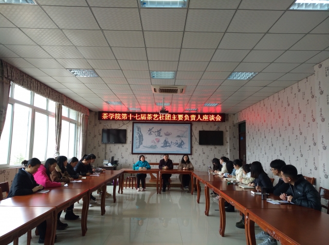3月5日中午13:00,茶学院茶艺社团在1C201茶艺实训室举行了新一届即第十七届主要干部座谈会。茶学院院长郭桂义教授、茶学院党总支组织员朱建梅及社团指导教师刘佳出席了会议,茶艺社团会长、副会长及新一届茶艺社团主要干部参加了座谈会。
