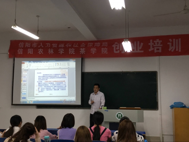 为了响应国家“大众创业、万众创新”的号召,贯彻落实党中央、国务院和省委、省政府“以创业带动就业”的部署,鼓励、引导和支持我院学生实现自主创业,促使广大学生提高市场就业能力和高质量就业,提升创新能力和创业意识,茶学院联合信阳市人社局开展大学生SIYB创业培训,培训班于4月20日开班,茶学院2016级全体本科参加培训。