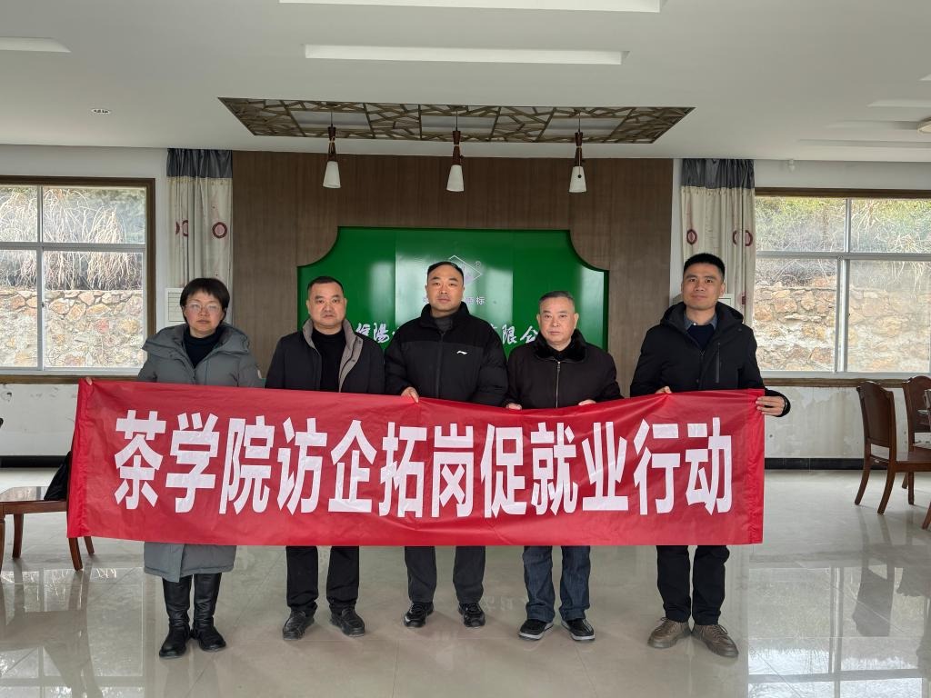 为深入贯彻落实高校毕业生就业工作决策部署,拓宽毕业生就业渠道,2月3日,茶学院党委书记王鹏、院长孙慕芳、副书记王子浩一行前往河南仰天雪绿茶叶有限公司、信阳十八盘茶业有限公司开展访企拓岗专项行动。