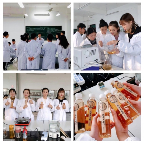 授课教师张永瑞、朱尧老师以市场上茶时尚快消品为产品目标,增设了“速溶茶感官评价”、“抹茶感官审评”、“冰红茶饮料制作”、“风味调饮茶制作”、“抹茶雪花酥制作”、“抹茶牛轧糖制作”、“茶瓜子的加工”、“抹茶酱制作”等项目。其中“冰红茶饮料制作”、“风味调饮茶制作”为综合性实验,学生根据茶叶原料(速溶茶、超微茶粉、袋泡茶)的特性、茶饮料制作流程、茶色素与花青素的色彩运用等进行设计与分组实施。《茶叶综合利用》课程具有时代性、实践性特点,以学生为中心,注重提高学生学习兴趣和开发学生创造性,受到了学生的欢迎和好评。今后,课程在确保实践性的基础上,希望能在课程高阶性上有所突破。(茶学院 张永瑞 朱尧)