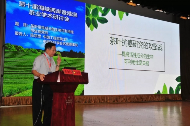 9月3日上午开幕式结束后,中国工程院院士、中国茶叶学会名誉理事长、中国农业科学院茶叶研究所陈宗懋研究员以《茶叶活性成分的生物可利用性与生物效应》为题,国家“千人计划”特聘专家、国际玉米小麦改良中心主任科学家、中国农业科学院作物科学研究所徐云碧研究员以《分子植物育种:机遇与挑战》为题作了极具科学性、前瞻性的报告;台湾茶协会理事长、弘光科技大学陈玉舜教授、台湾茶协会创会理事长、中兴大学区少梅教授分别以《台湾茶产业多元发展新思维大突破:茶创、文创、生活微商与休闲观光》和《茶中遨游之我思、我见—回应朱敬一院士有关茶的38个问题》为题作报告,深入分析了台湾茶产业的现状和前景以及深入浅出地回答了有关茶的诸多问题。