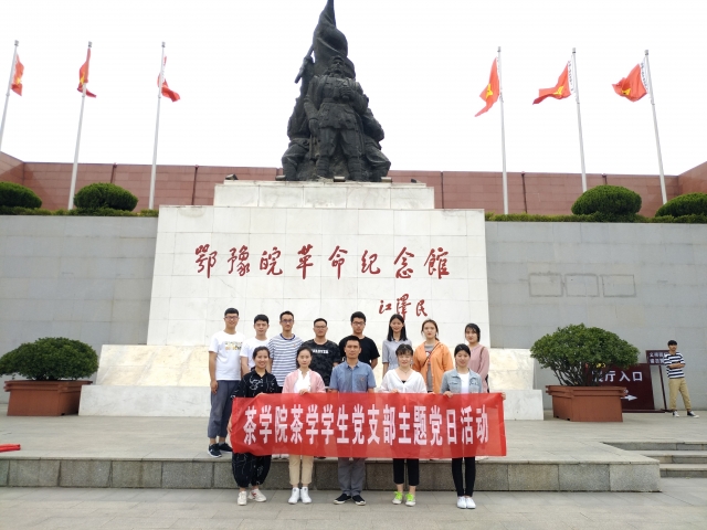 为学习贯彻习近平总书记在纪念五四运动100周年大会上的讲话精神,缅怀革命先烈,继承先烈遗志,5月28日下午,在茶学院茶学学生支部书记王子浩、茶文化与营销学生支部书记丁岚、茶学学生支部组织委员梁玉洁的带领下,茶学院全体学生党员前往鄂豫皖革命纪念馆参观学习。