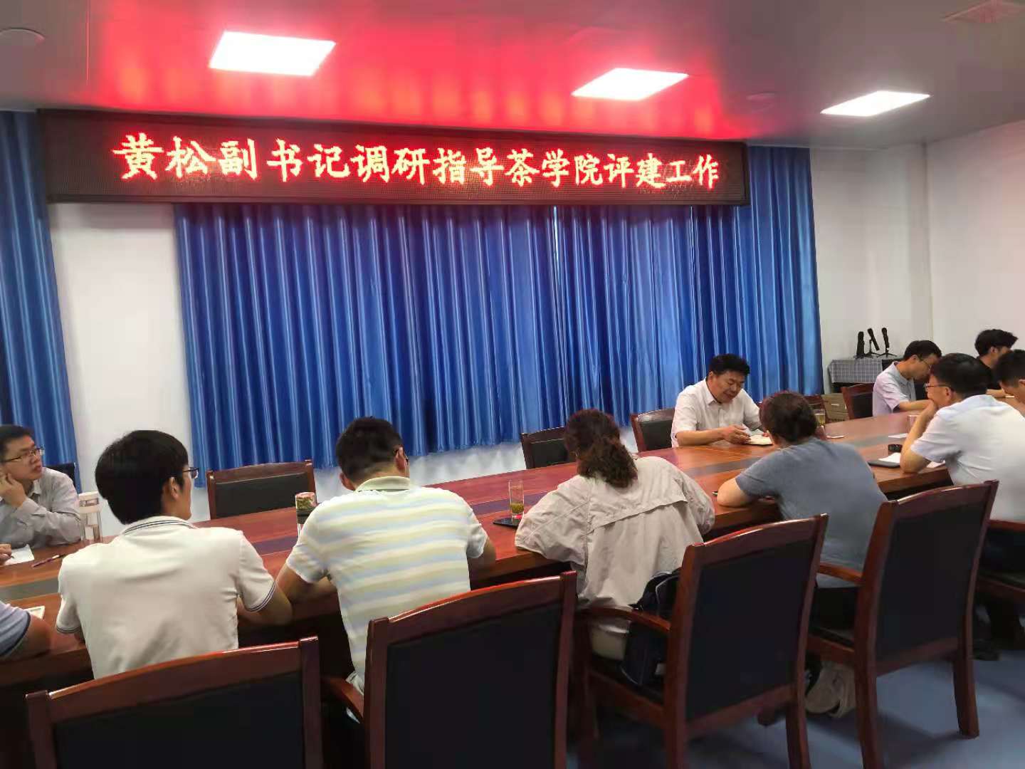 6月18上午,副书记黄松到茶学院调研指导本科教学合格评估工作。会议由茶学院党总支书记、院长郭桂义主持。茶学院科级以上干部及部分教师参会。