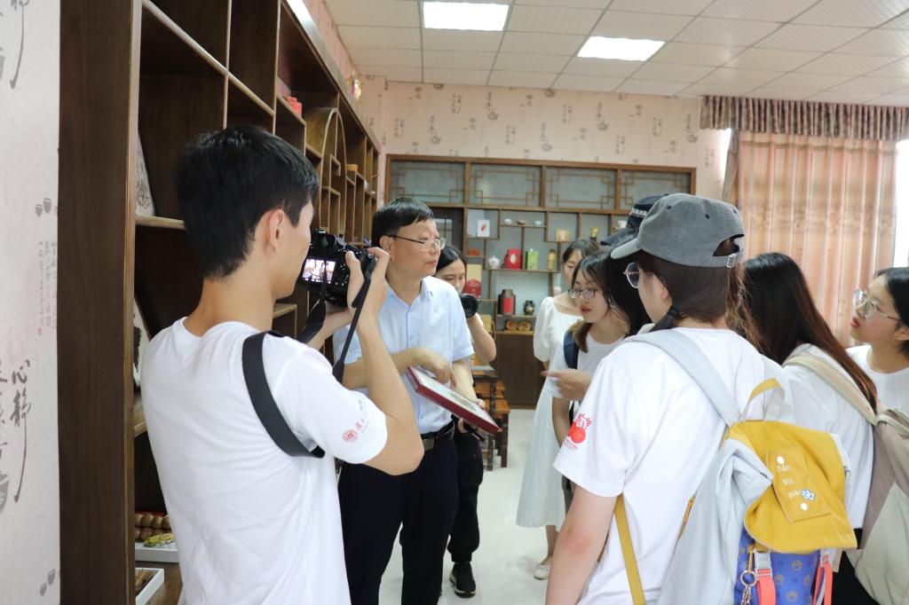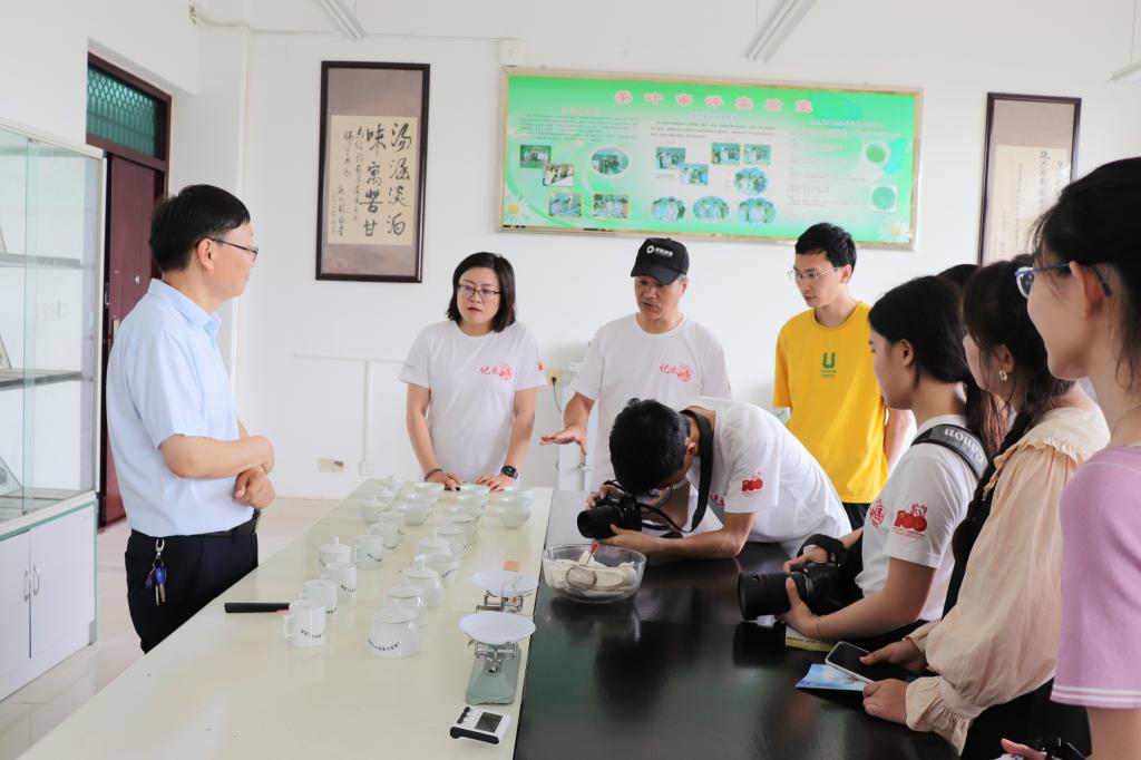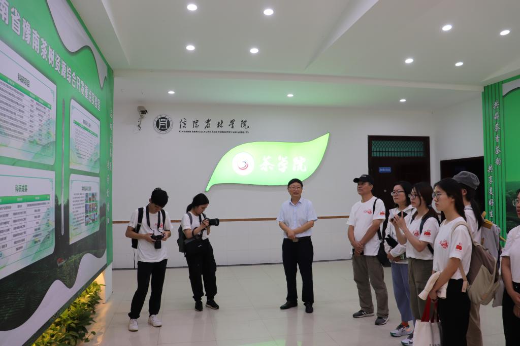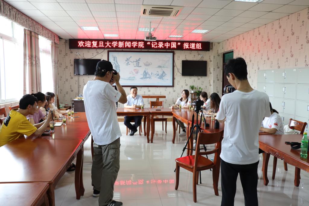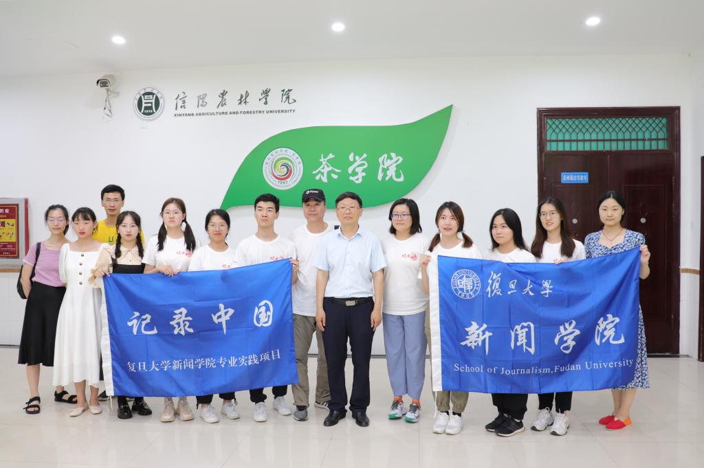 7月10日下午,beat365在线平台官网茶学院院长郭桂义教授接受复旦大学新闻学院暑期社会实践活动“记录中国”专业实践项目组采访。项目组由复旦大学新闻学院谈建国老师和澎湃新闻记者刁凡超记者共同带队、6名同学组成,beat365在线平台官网文学艺术学院2名老师及2名同学随行。本次采访主要为了解信阳毛尖茶的发展等情况。