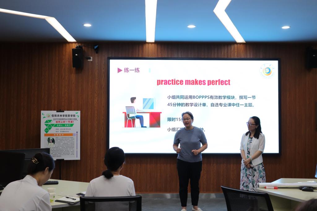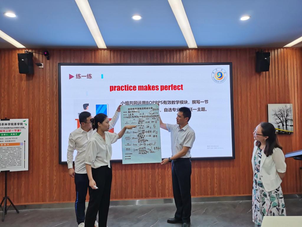 为了进一步打造“精彩一课”,提升我院教师教学水平,学习先进教学设计,丰富教学模式方法,7月31日,茶学院邀请黄淮学院关英子老师开展BOPPPS教学模式设计培训,全院教师参加此次培训。