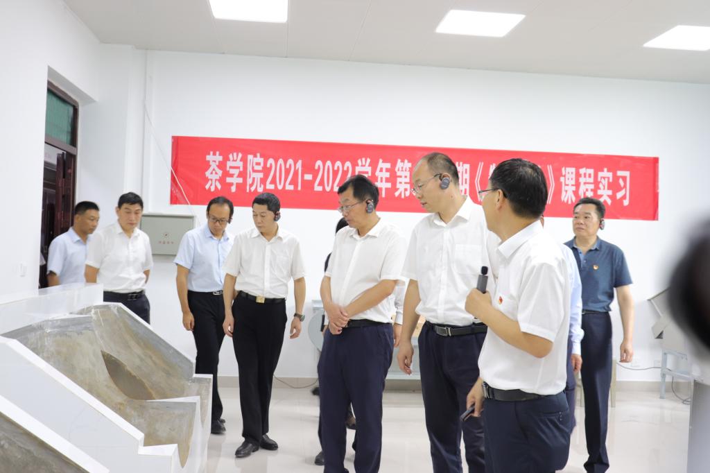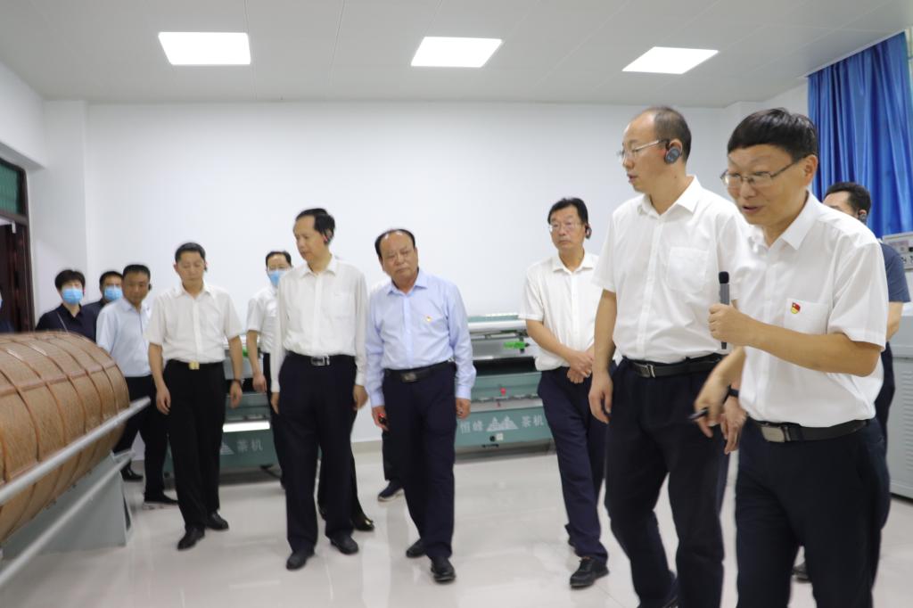 蔡松涛一行参观了茶学院实验室并对取得的成果表示肯定,后又来到郭桂义中原教学名师工作室看望慰问了教学一线工作的教师,分别同茶学院院长、国家级教学名师郭桂义教授、省脱贫攻坚先进个人王德芝教授、省级教学名师杨俊杰教授、师德标兵史雅洁老师亲切交流,关心他们的工作生活情况。