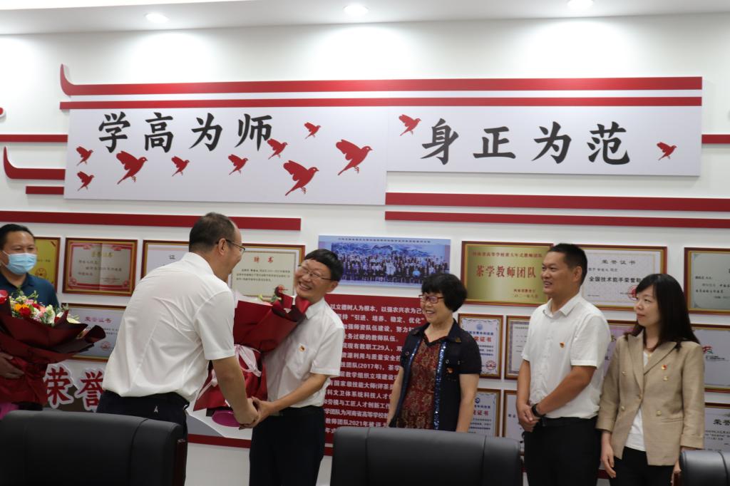 9月6日下午,在第37个教师节即将来临之际,信阳市市长蔡松涛一行莅临茶学院考察,慰问国家级教学名师郭桂义教授,并对全校教职工致以节日问候。
