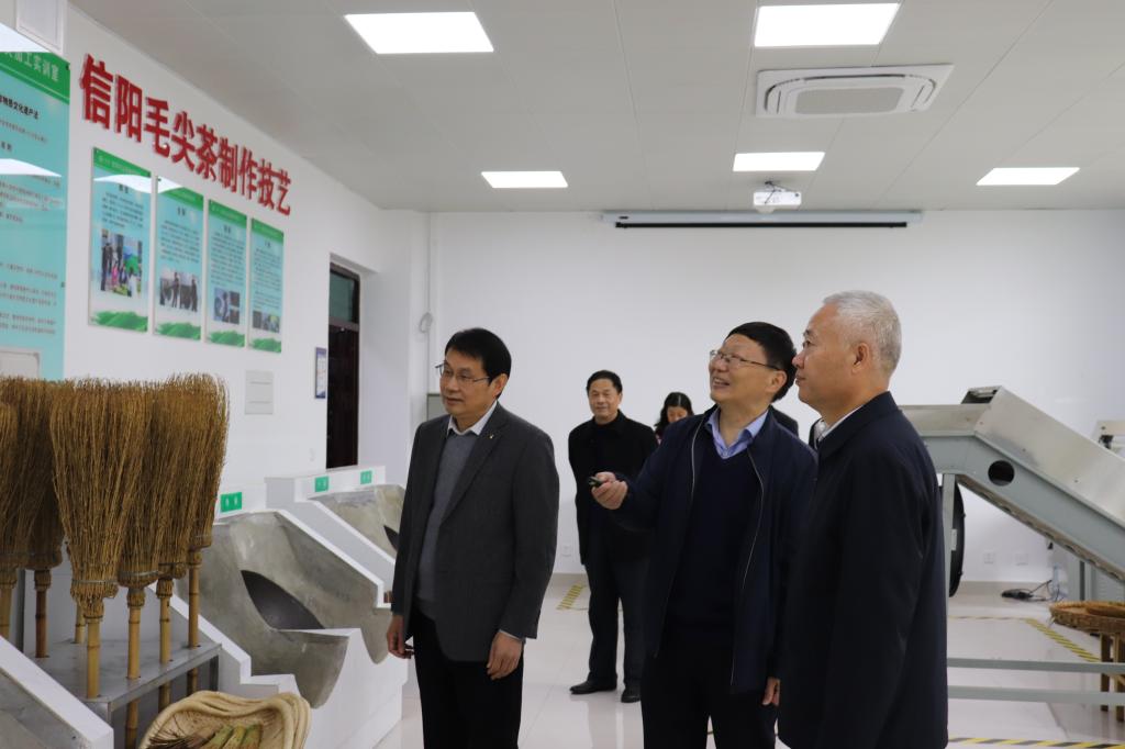 胡亚才先后到茶学院制茶实训室(信阳市非物质文化遗产信阳毛尖茶制作技艺社会传承基地)、郭桂义中原教学名师工作室、茶叶审评实验室(郭桂义国家级评茶员技能大师工作室)、茶艺实验室(信阳市非物质文化遗产茶艺社会传承基地)调研指导,实地了解茶学院实习实训工作和技能培训基地建设工作开展情况,并在茶艺实验室召开座谈会。