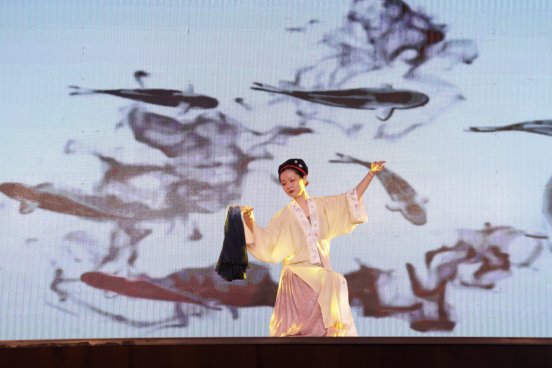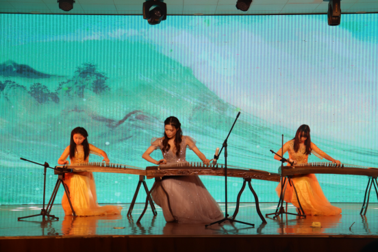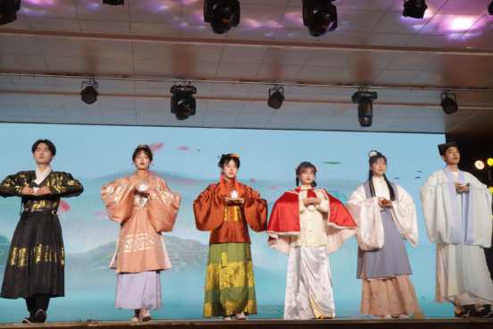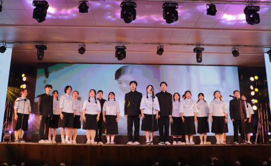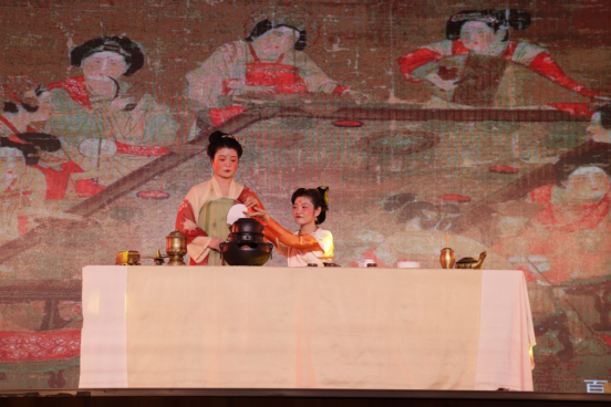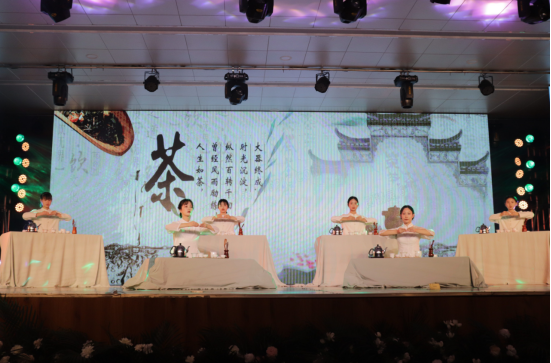 开幕式围绕“茶”这一主题,通过男子和女子茶艺表演、古筝合奏、舞蹈、朗诵、歌唱、配音等形式,不仅表达了对建党百年的庆祝之情,还展示了我国博大精深的茶文化内涵,充分体现了我院学子对茶文化的热爱和传承情感。优美艳丽的双人舞蹈《赤伶》拉开了开幕式的序言;恢弘开阔的师生古筝合奏《战台风》使现场高潮迭起;男子和女子茶艺表演展示了紫茶壶和盖碗不同的泡茶意境;为庆祝建党一百周年特别编排的教师配音演唱节目《声悦华夏》、学生合唱节目《五四版错位时空》,声声入心、旋律悠扬、气势恢弘,引起了现场师生的情感共鸣;结合课堂实践教学的《调饮茶》表演,更是吸引了观众的目光,让大家感受到了有着千年历史的茶饮与现代调饮碰撞出的无限魅力;诙谐且有文化底蕴的相声《文玩》、梦回大唐的《大唐煎茶》表演、古风演绎的服装秀《茶行》等节目精彩纷呈,传递着茶文化的丰富意蕴。
