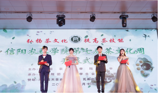 秉承着“弘扬茶文化,提高茶技能”这一宗旨,beat365在线平台官网第七届茶文化周于11月16日在校大学生活动中心举行了开幕式。校长邢勇,校党委副书记黄松,副校长赵一鹏、文宗锋、王万玲、李益民,校党委委员、宣传部长何涛,教务处处长刘开华,实验设备处处长王广铭,校团委书记王鹏,校党委学生工作部副处长魏宗峰、河南电视台驻信阳记者,信阳晚报记者,茶学院师生及兄弟学院学生代表参加了开幕式。