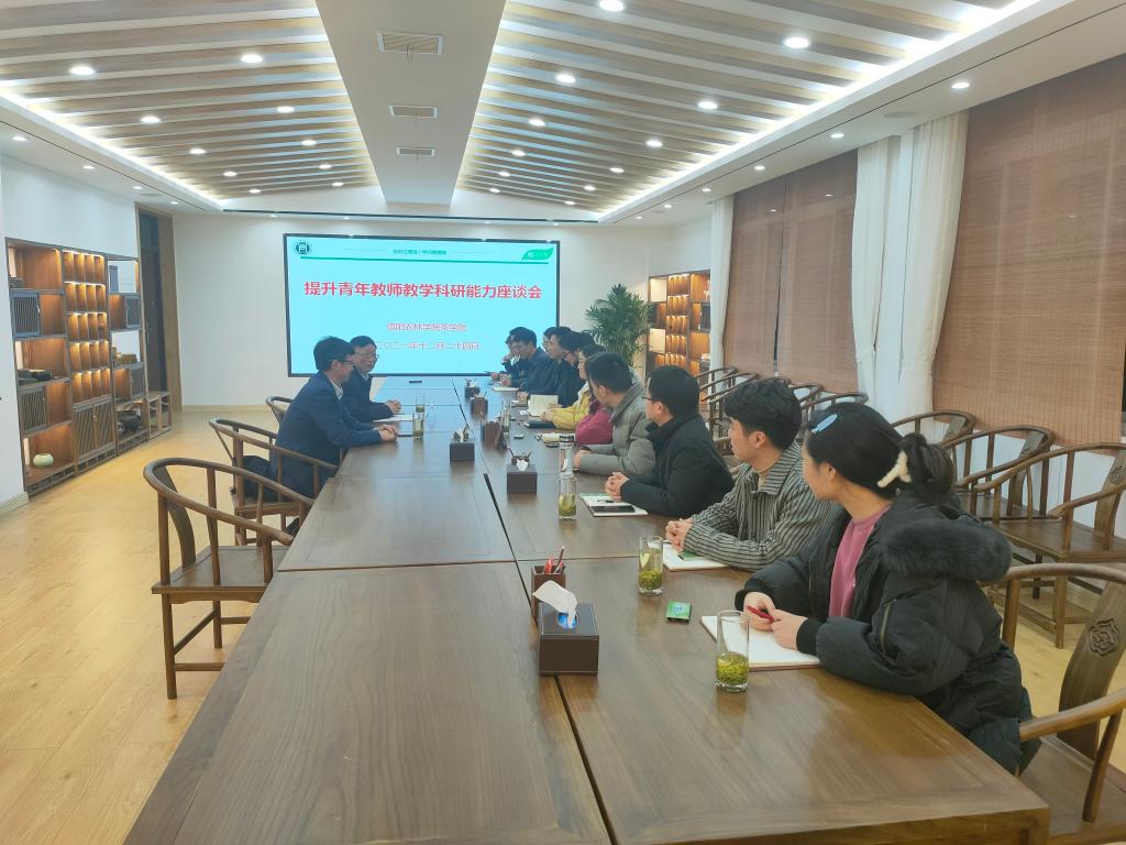 2021年12月25日,茶学院邀请浙江大学王岳飞教授为青年教师教学科研能力提升做培训,培训会在科技楼1C201召开。茶学院院长、党总支书记郭桂义、副院长孙慕芳、陈义、党总支副书记朱建梅及全体专业教师参加了此次培训会,会议由郭桂义教授主持。