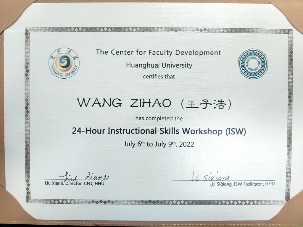 为进一步更新教育教学理念,提升教学技能水平,强化师资队伍建设,服务教育教学改革和人才培养,学校教师发展中心于7月4日-7月8日在黄淮学院成功举办了ISW国际认证培训班。茶学院王子浩参加培训,并成功取得ISW国际认证证书。