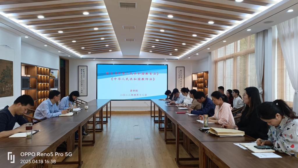 根据学校“法治教育宣传周”活动要求,为营造良好法律氛围,提高师生法治意识和法治素养,深入推进依法治校工作,进一步提高依法办学水平,茶学院于4月18日下午,在1C201组织全体教师学习了《中华人民共和国教育法》、《中华人民共和国教师法》部分内容。