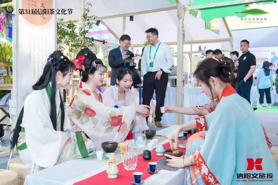 春末夏初的百花园飘满茶香,2023年4月28日至5月3日信阳茶博会在这里隆重举行。信阳作为信阳毛尖的产区,一直致力于茶叶发展,信阳市各级领导、全国道德模范、劳动模范代表、优秀共产党员代表等出席本次活动,同时,本次活动也吸引了许多茶叶人士、爱茶人士、商业人士等参加,设置多达1200个展位,王杉老师携多名茶艺社团成员在茶百戏展位倚画栖林席位进行点茶表演及展示。
