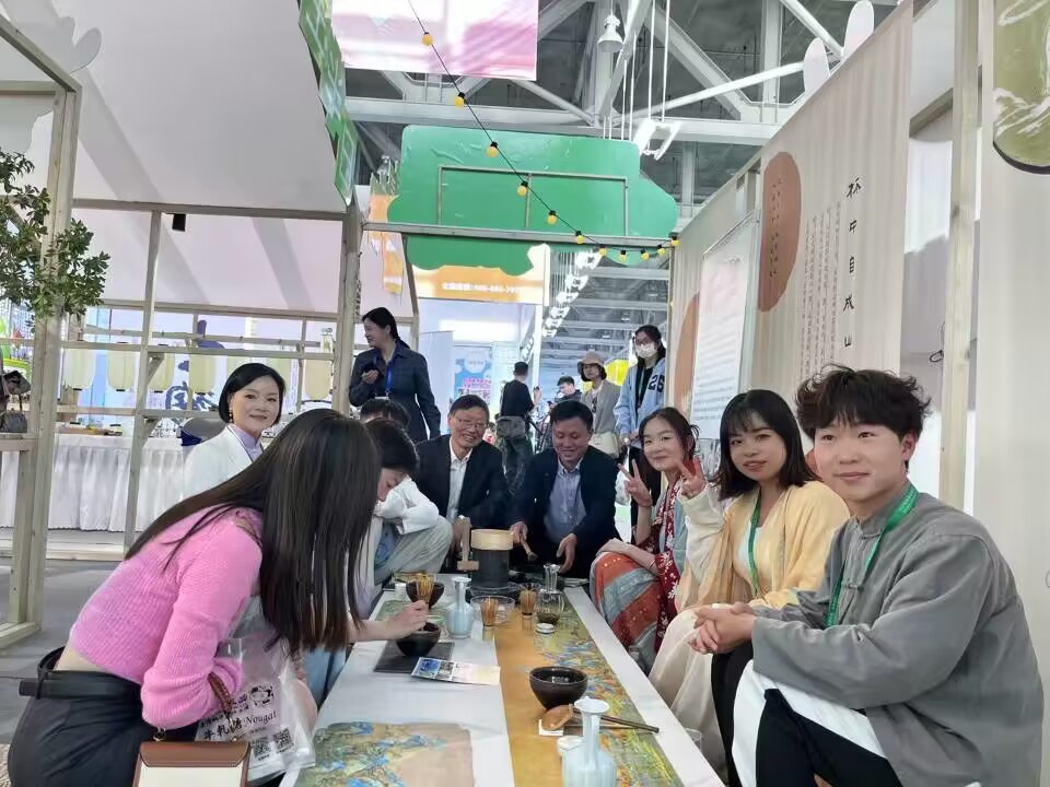 茶艺社团所在的展位,一直都是人气满满,座无虚席,王杉老师与同学们一起为大家讲解点茶知识,进行点茶茶艺表演,向大家展示变幻莫测的茶百戏,并鼓励大家尝试亲手点茶,体验点茶过程,感受点茶魅力,让点茶走进大众生活。