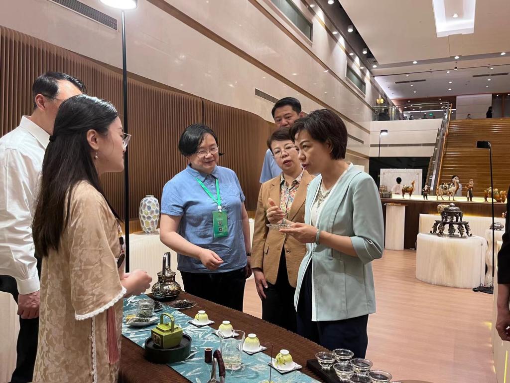 作为大会活动之一,“黄河之礼”全省文创产品和非遗项目主题展同步进行,设置茶和天下、丝路之光、豫瓷之美、锦绣中原、乡土河南、精雕细琢、天下粮仓、醉美中原、文创集萃、文房雅集十大板块,汇聚全省20余家文创企业、80多个非遗项目,共展出300余件(套)作品,多层次全方位展示近年来全省非遗保护传承和创新创造方面的成果。